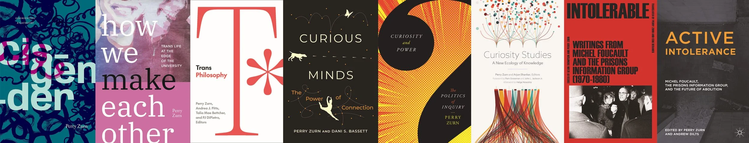 16. Perry Zurn, "Work and Failure: Assessing the Prisons Information Group," in Active Intolerance: Michel Foucault, the Prisons Information Group, and the Future of Abolition, eds. Perry Zurn and Andrew Dilts (New York: Palgrave, 2016), 75-91.